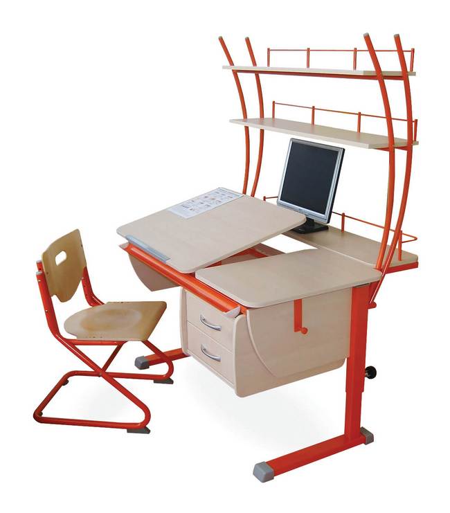 Помимо удобного стула, школьная домашняя парта может укомплектовываться дополнительными элементами. А именно: