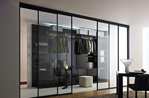 Можно установить их и если под гардеробную выделяется часть комнаты. Раздвижные панели в этом случае будут служить перегородкой, выполняющей зонирование.