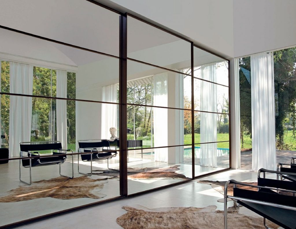 В любом случае, вопрос размещения раздвижных панелей необходимо решать, исходя из конкретных задач. Если необходимо расширить пространство, то идеальным вариантом может быть установка в комнату зеркальной панели на всю стену.