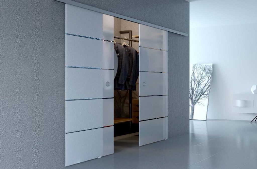 Распространённым и универсальным вариантом для гардеробных разных видов являются раздвижные двери. Поэтому стоит рассмотреть особенности их установки, которая не требует профессиональных инструментов. Для работы понадобится: