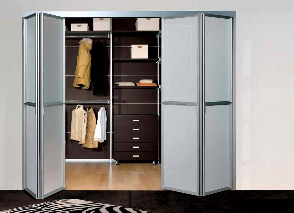 Существует множество вариантов обустройства зоны хранения, но всегда следует определить параметры двери, ведь от этого зависит комфортная эксплуатация помещения. Одним из распространённых случаев является то, что гардеробная обустраивается в отдельной небольшой комнате. В таком случае полотно двери должно быть меньше проёма примерно на 50 мм. И также часто зона хранения обустраивается в свободном углу просторной комнаты. Тогда создают конструкцию из алюминиевых профилей и гипсокартона, определяя габариты двери индивидуально, то есть в зависимости от размера образуемого помещения, личных предпочтений. При этом можно учитывать то, что оптимальный проём имеет параметры 700х2000 мм и более.