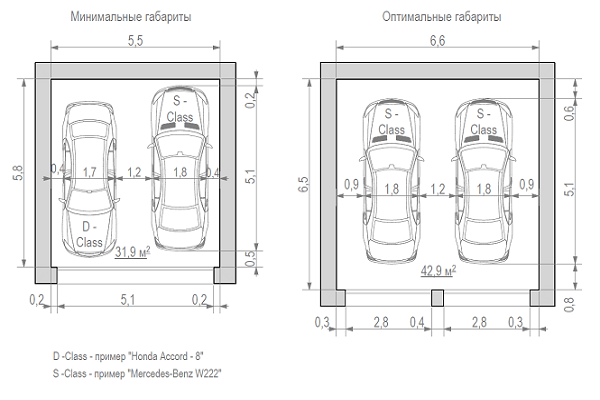 Берем стандартные параметры и прибавляем к ним параметры авто. В итоге получается оптимальный вариант гаража и параметры у него следующие: