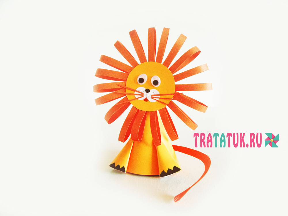Подробнее: бумажный лев из конусов и полосок.