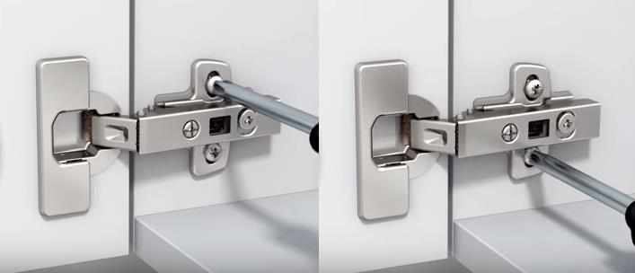 Регулируемые мебельные петли позволяют изменять расположение фасада в плоскости – это полезно в том случае, если либо наблюдается плохое прижатие двери к корпусу мебели, либо при нажиме дверь словно отскакивает в противоположную нажатию сторону.
