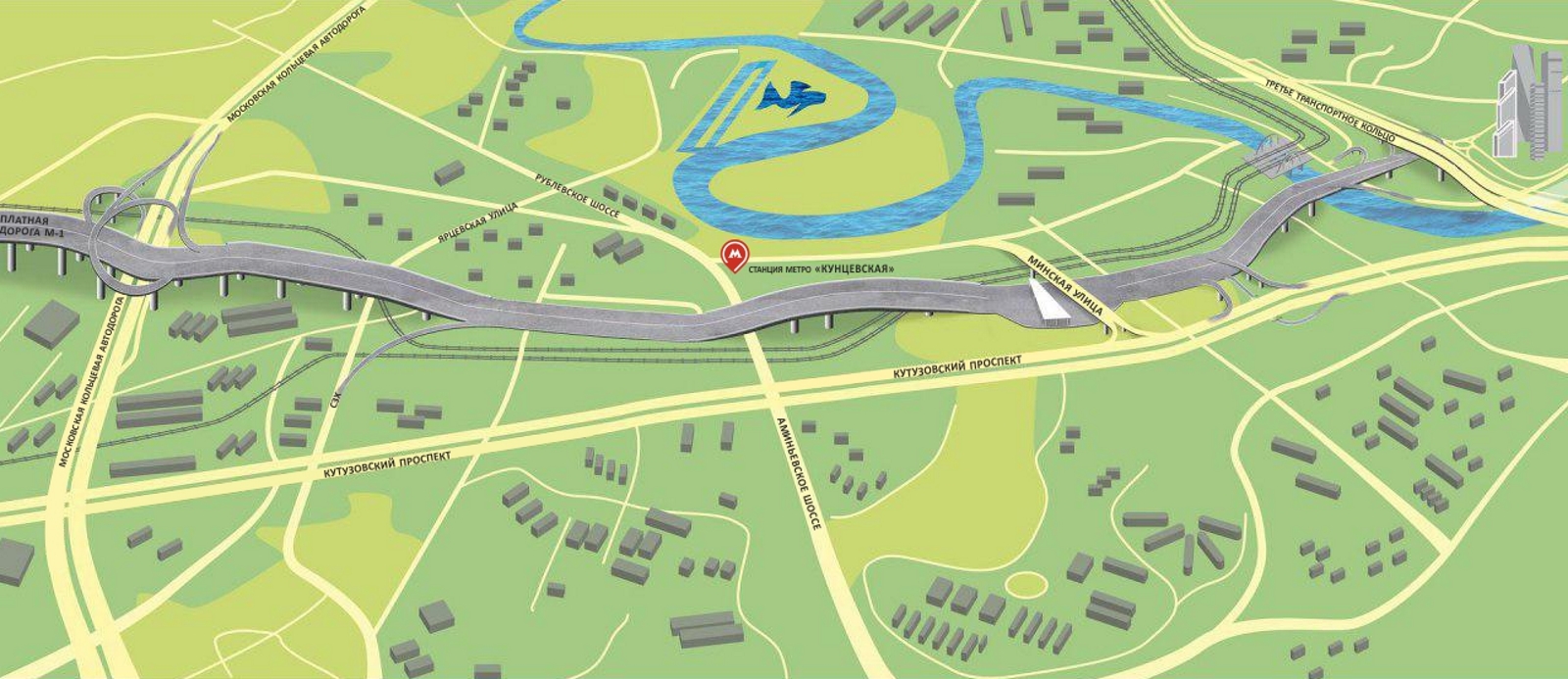 - эстакаду основного хода через Рублевское шоссе и железнодорожные пути в районе станции метро «Кунцево»,
