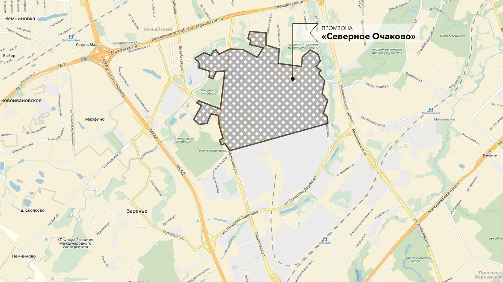 С северной стороны от территории производственной зоны расположен природный заказник «Долина реки Сетунь». Вдоль МКАД проходят линии электропередач.