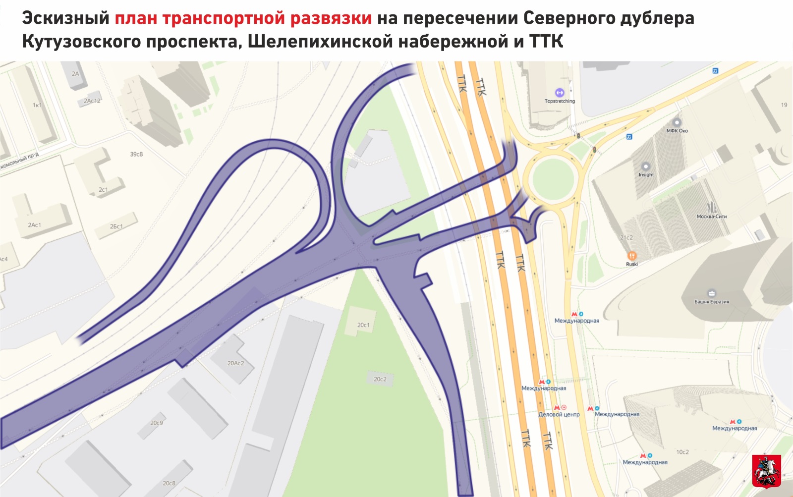 На участке вдоль железнодорожных путей Смоленского направления от Шелепихинской набережной до ТТК планируется построить съезд с Северного дублера Кутузовского проспекта на 1-й Красногвардейский проезд. Это обеспечит беспрепятственное движение на внутреннее направление ТТК и заезд в деловой центр «Сити» через 2-й Красногвардейский проезд.