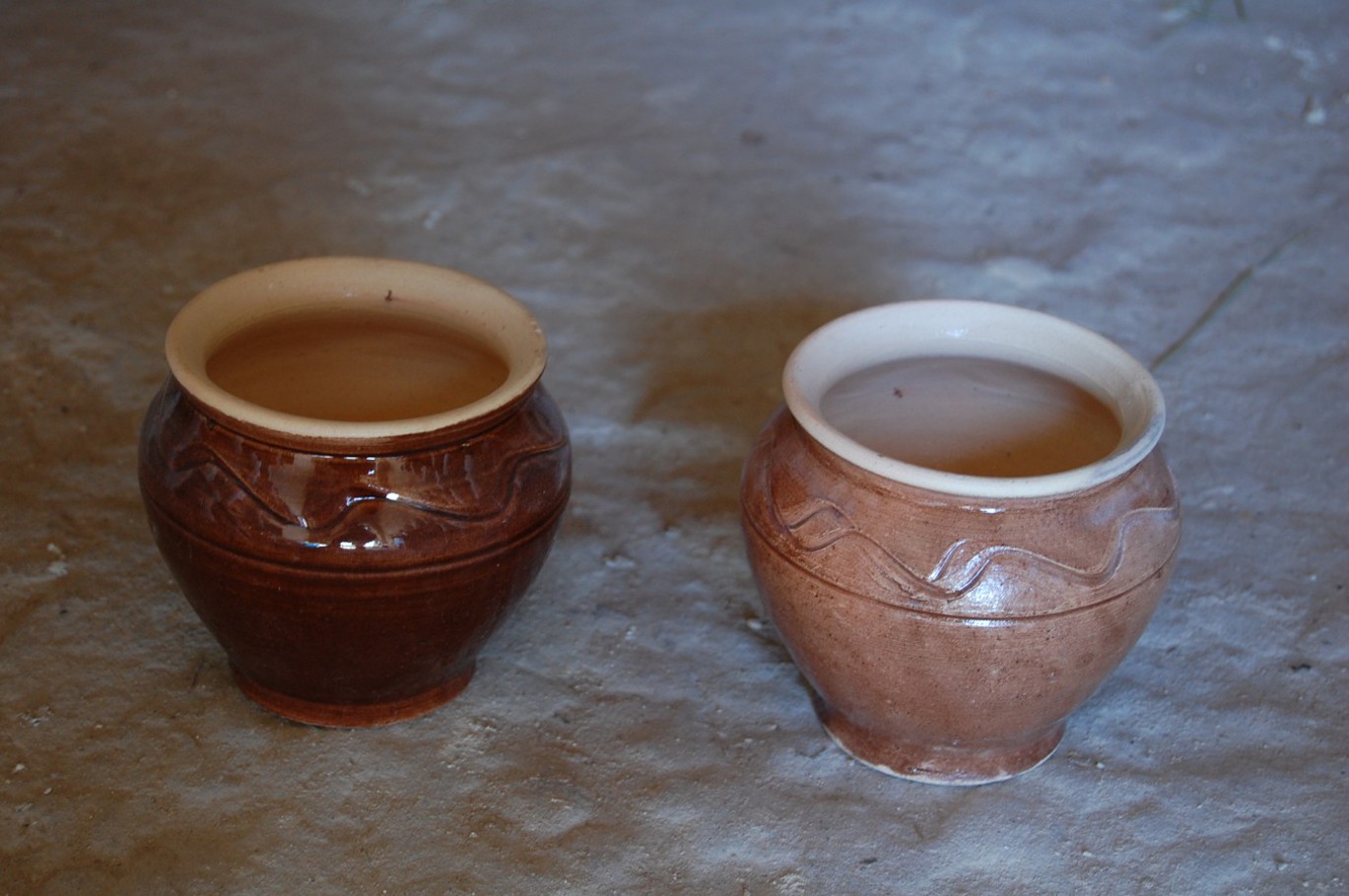 Меленковская керамика. Горшочки для вторых блюд, изготовленные в мастерской Малаховых из с. Коровино Меленковского района Владимирской области. Фото А.Г. Кулешова. 2010