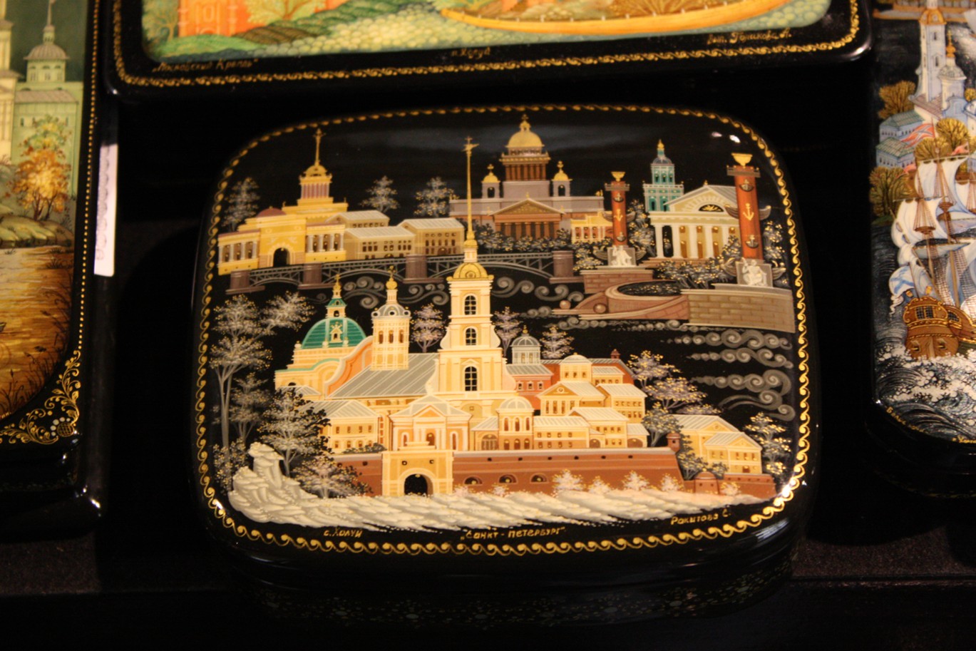 Светящиеся броши и шкатулки. Федоскинская лаковая миниатюра