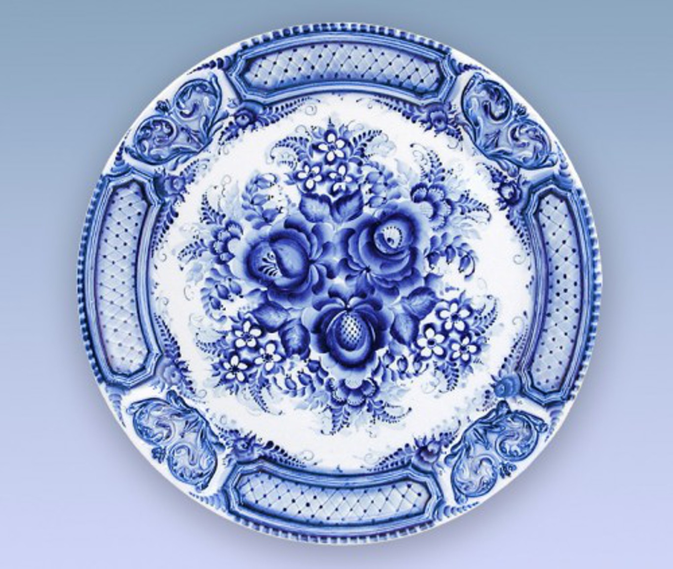Гжель – это название фарфора с нарядной синей росписью на белом фоне. Название это произошло от названия местности под Москвой. Гончарное ремесло существует здесь с