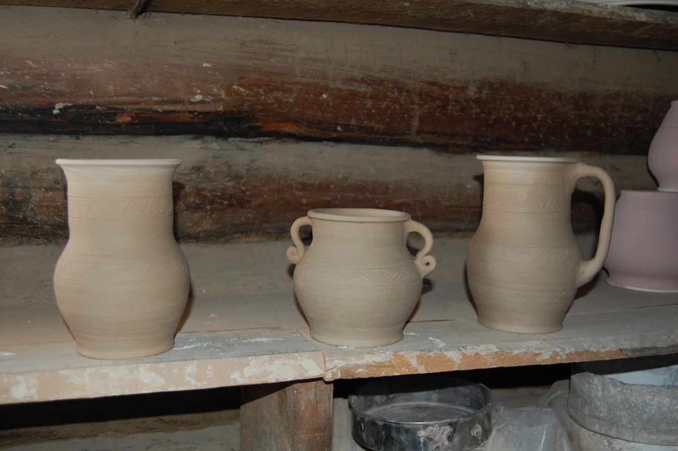 Посуда перед обжигом, сформованная мастером В.В. Караваевым из с. Коровино Меленковского района Владимирской области. Фото А.Г. Кулешова. 2010