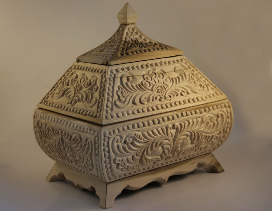 С помощью данной техники делали ковши, блюда, вазы и шкатулки, а также любые предметы домашнего декора и обихода. Особенность этих изделий состоит в преобладании различных завитков, розеток, веточек, тонировки и полировки дерева.
