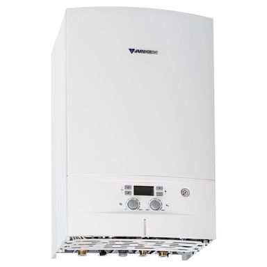 Газовый котёл Юнкерс конденсационного типа характеризуется закрытой камерой сгорания. В зависимости от того, что входит в комплект, может приобретаться для обогрева помещений до 500 м². Выполняется в трёх стандартных комплектациях: