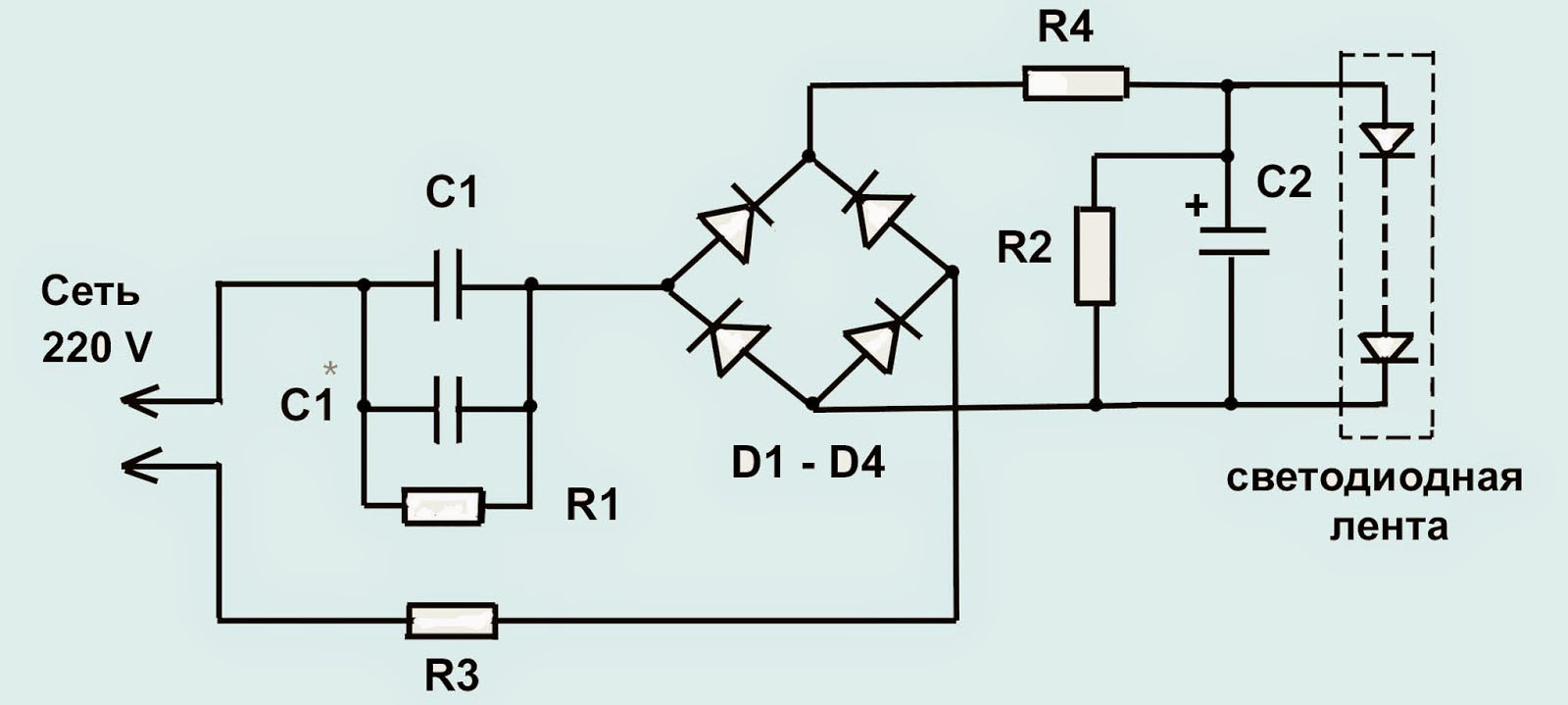 - В случае если все установленные в плату диоды исправны, но при горении постоянно мерцают, причиной этого может быть «пробой» конденсатора С1.
