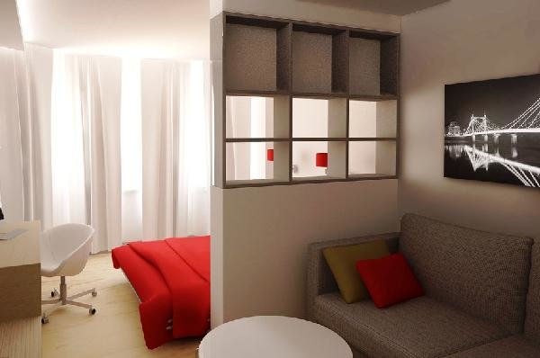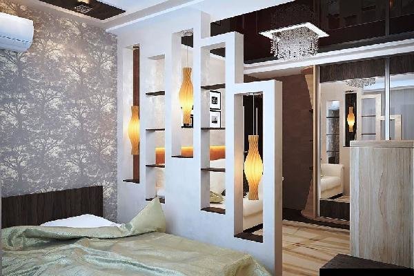2. Установить между комнатами не стену, а гипсокартонный стеллаж, раздвижную или мобильную перегородку, которую можно задвигать или складывать днем, чтобы солнечный свет проникал в комнату. Такую перепланировку можно не отражать на плане и разрешение на нее не нужно – ведь целостность комнаты нарушена не будет.