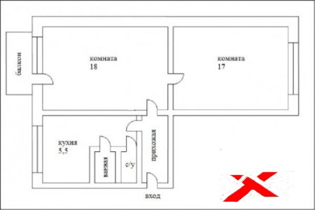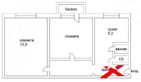 4. «Бабочка» ли «распашонка» – двухкомнатные планировки хрущевских домов, которые имеют площадь в 46-52 м2 и симметрично расположенные комнаты с разными входами из прихожей. Капитальный ремонт в такой двухкомнатной хрущевке можно затевать ради увеличения санузла (если вас устраивает перепланировка отдельной ванной в совмещенную) или разделения одной из комнат перегородкой. Кухню же можно увеличить, только объединив с одной из комнат.