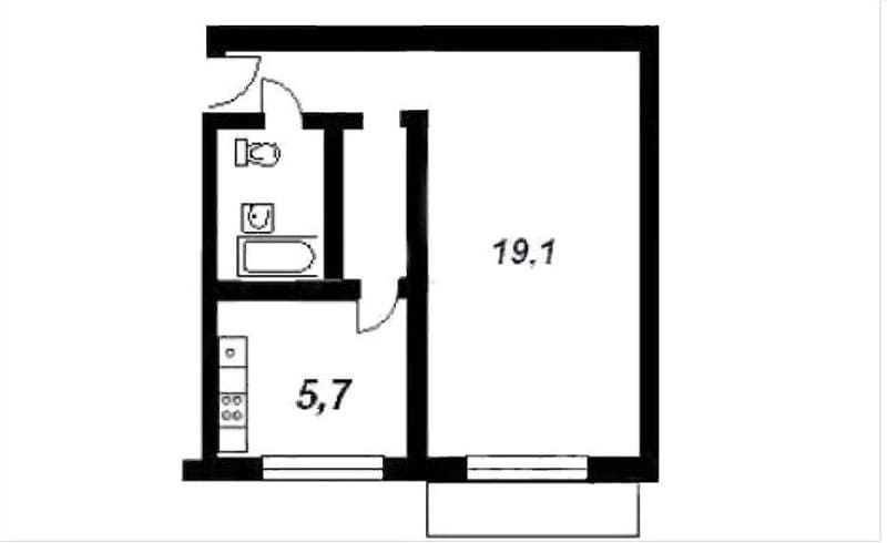 1. «Книжка» – пожалуй, самое неудачное расположение комнат, где жилые помещения проходящие, а площадь кухни варьирует в пределах 5-6 м2. Общий же размер помещения – 40-42 м2. Главный недостаток – раздельные комнаты можно получить только за счет существенного уменьшения гостиной, удлинив коридор. Конечно, можно объединить комнату с кухней, заодно увеличив площадь последней, но стоит ли оно того?