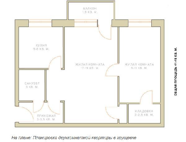Перепланировка двухкомнатной хрущевки: стандартные варианты и их возможности
