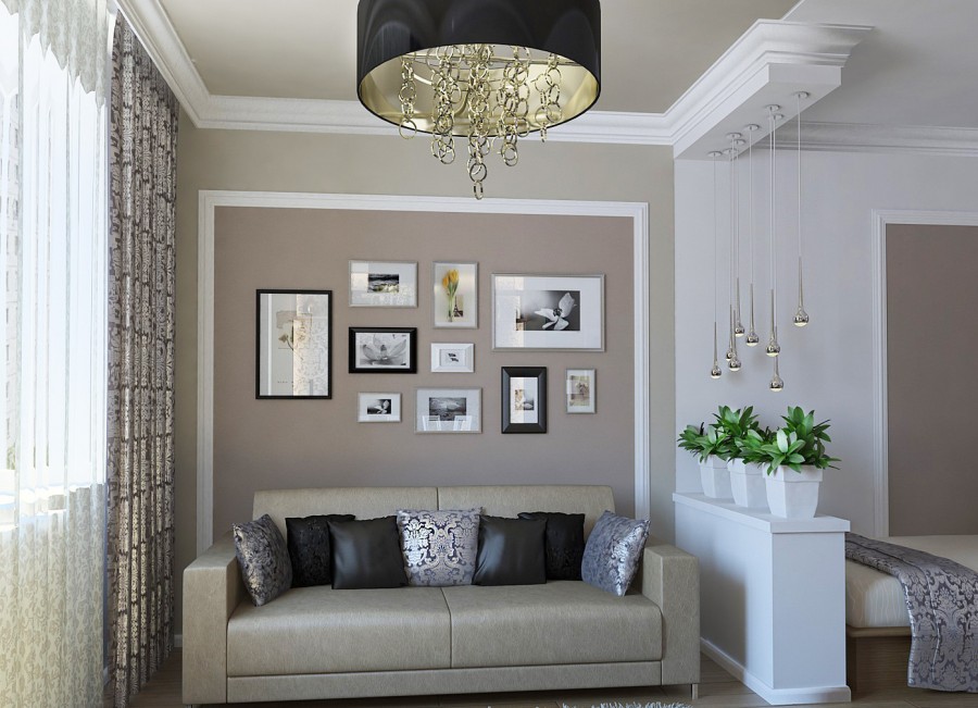 Обновленные поверхности будут радовать глаз современной отделкой. Если использовать светлые оттенки, потолок будет казаться выше, а стенки шире. Не забудьте про гармоничный текстиль, который поможет зонировать пространство, завершить интерьер комнаты, сделать акцент на отдельных его элементах.