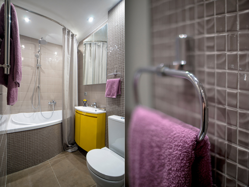 А вот разделить изначально совмещенный санузел, хотя и реально с точки зрения закона, обычно довольно сложно из-за маленькой площади, проще обойтись условной перегородкой для зонирования пространства или душевой шторкой.
