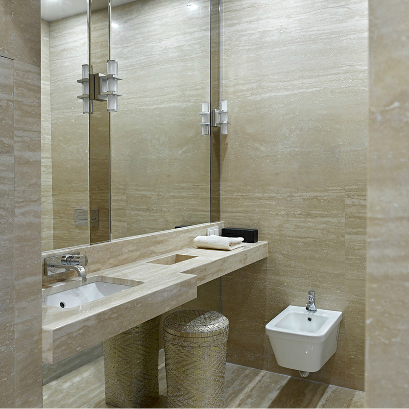 Уложенная по диагонали плитка визуально увеличивает пространство. Такой способ укладки рекомендуется использовать для пола.