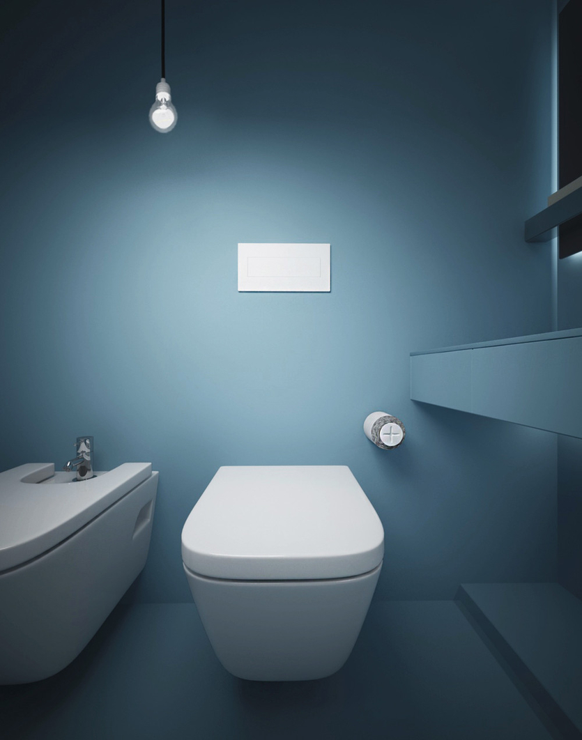 Дизайнеры также предлагают помещение туалета перепрофилировать под стиральный блок с машинкой, оснастив кранами и раковиной, подвесным душем и сливной решеткой в полу. По утрам это еще и дополнительный умывальник, если надо в жару – второй душ. В соседней комнате останется полноценный резервуар для принятия ванн компактной формы, унитаз и раковина.