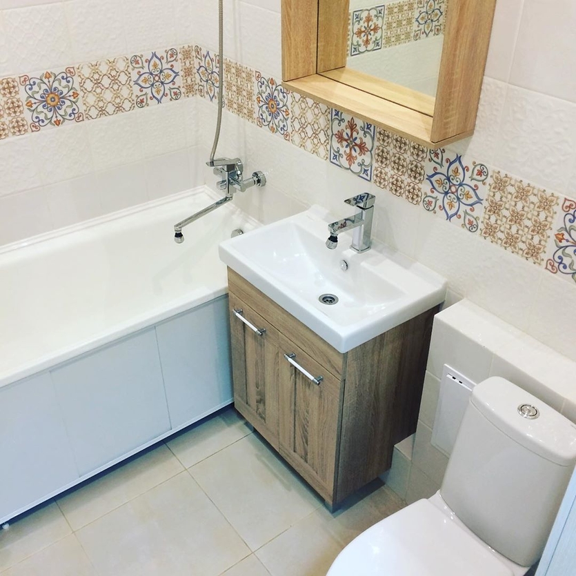 Дизайн совмещенного санузла в хрущевке: фриз сделает комнату шире