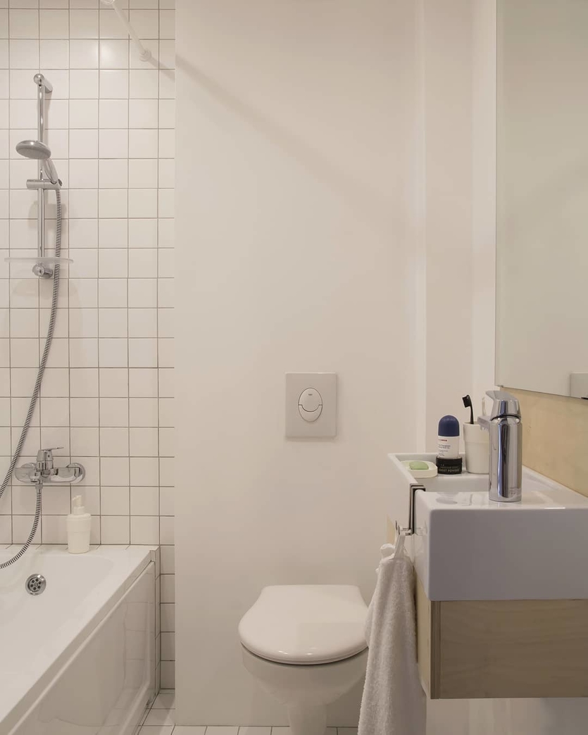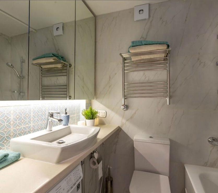 1. Лючок к коммуникациям. Оформлять или скрытым люком под плитку или мебельным шкафчиком. Главное не ставить металлический белый — это техническое решение не для квартир и выглядит оно всегда отвратительно.