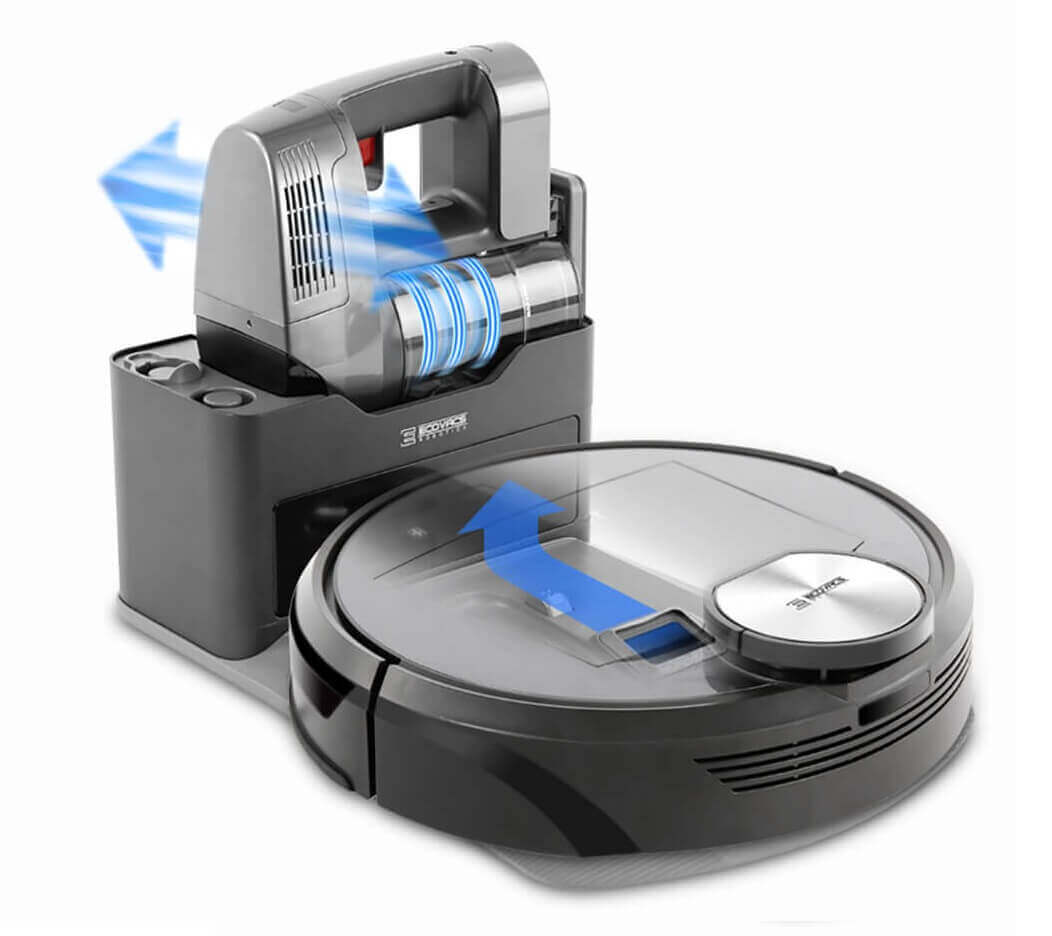 Последний пункт является уникальным. Ни один робот-пылесос с самоочисткой от других брендов не оснащен дополнительным ручным пылесосом, а производители Ecovacs продумали такое исполнение в моделях DeeBot R98 и D76 (о нем расскажем ниже).