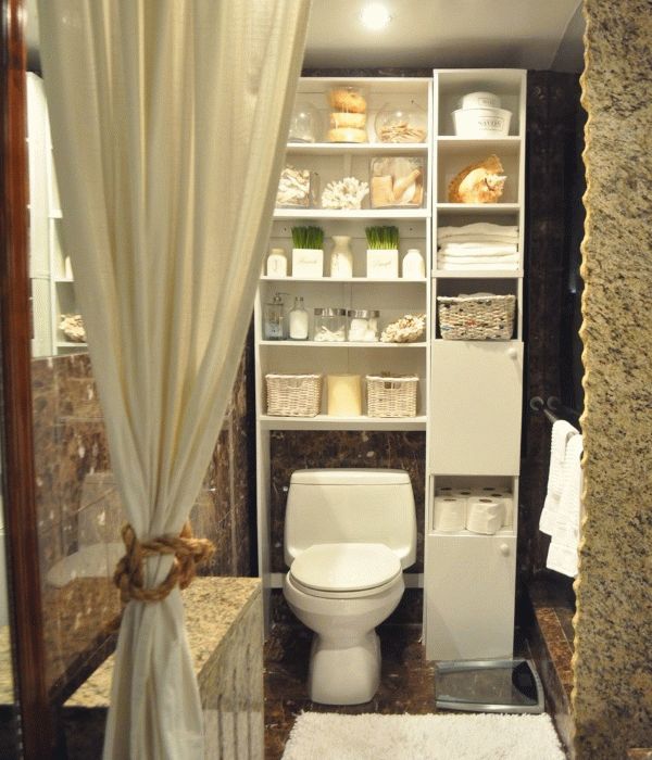 Шкаф в туалете за унитазом (30 примеров с фото)