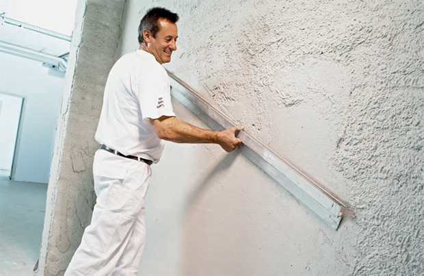 - Гипсовая штукатурка даёт ровную поверхность при правильном, аккуратном нанесении. Часто после неё не требуется шпатлевание.