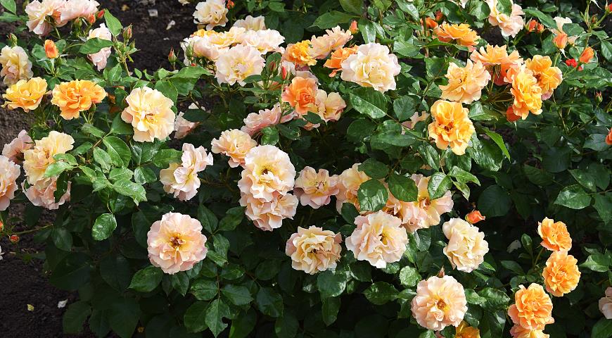 Вестерленд. Розы с крупными пушистыми цветками абрикосово-оранжевого цвета с сильным ароматом. Разрастается до 2 метров.