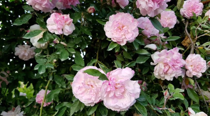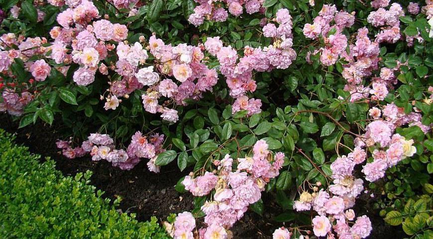 - Розовые: Anna Livia, Bella Rose, Bluhwunder, Centenaire de Lourdes, Georgette, Fortuna, Ноте Garten, Leonardo de Vinci, Neon, Queen Mother, Pink Diadem, Rosalinde, Rosenprofessor Sieber.