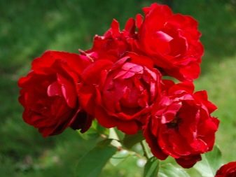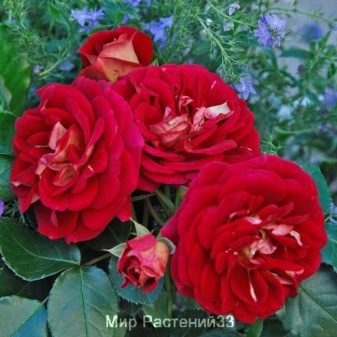 - Лили Марлен. Обильноцветущий куст с ярко-красными цветами. Размер бутонов достигает 8 см. В период цветения кажется, что весь куст в цветах, так как в одной кисти от 5 до 10 бутонов.
