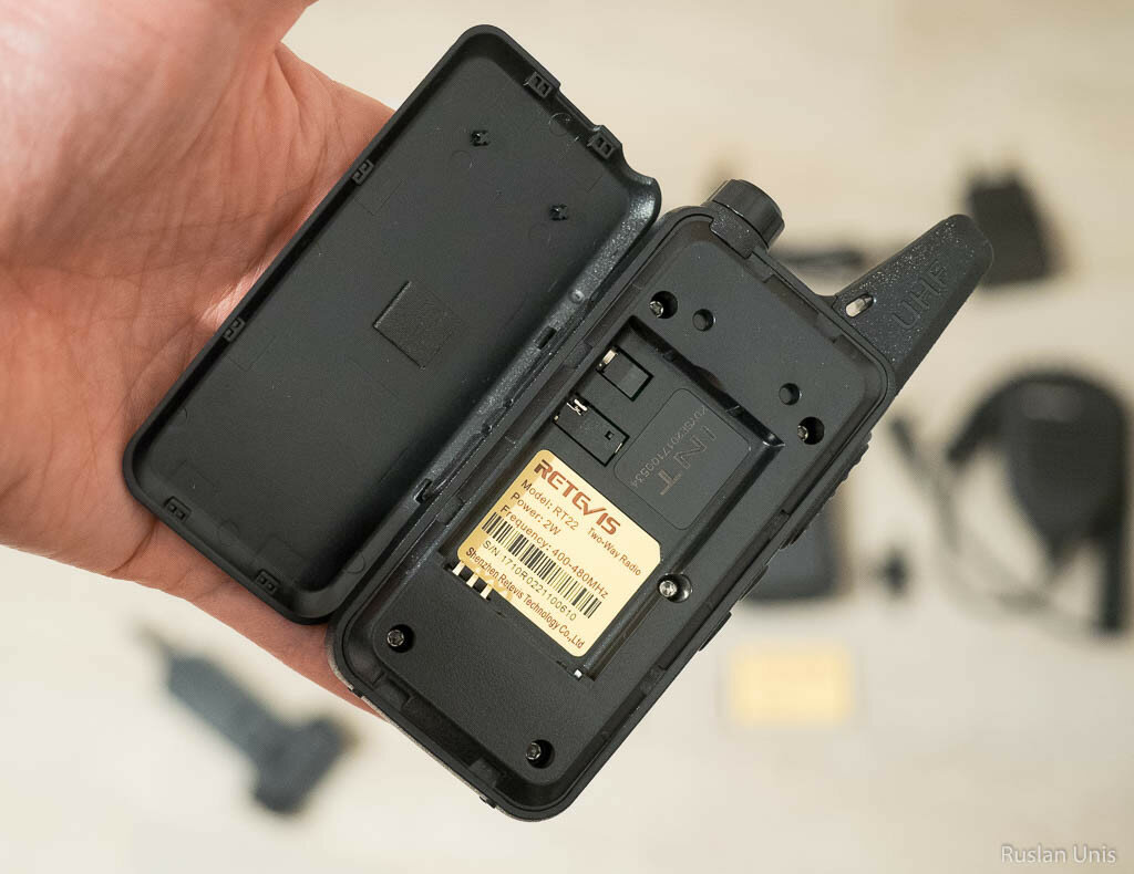 Открываем заднюю крышку, вставляем аккумуляторы. Как я уже писал выше, один из плюсов этих раций в том, что в них используются аккумуляторы BL-5C как в старых Нокиях.