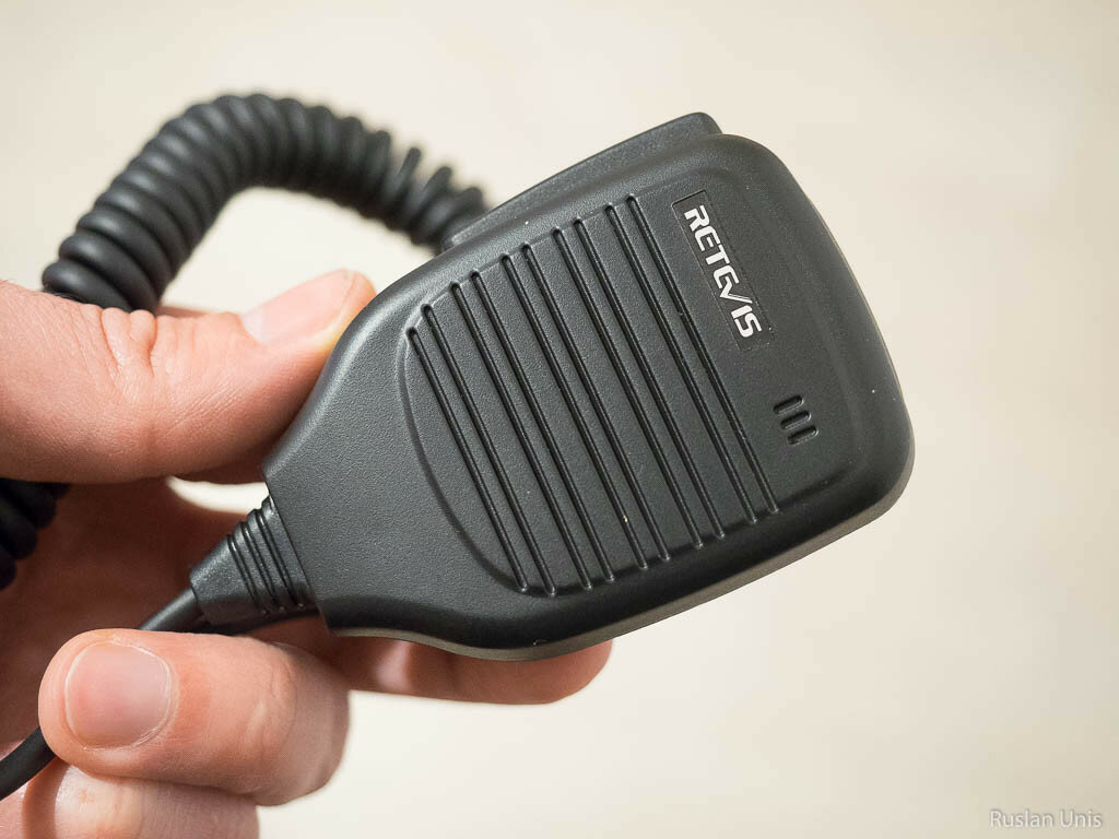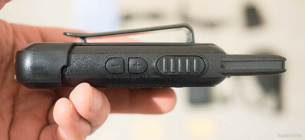 Слева большая кнопка передачи голоса (PTT) и две кнопки переключения каналов.