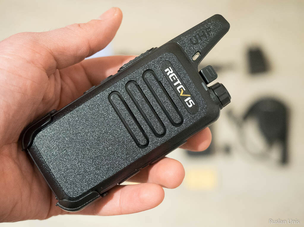 Рации сами по себе выглядят несерьезно, как игрушечные. Многие привыкли к классическому виду раций, когда держишь в руках кирпичик с длинной и тонкой антенной. Здесь же тонкий прямоугольник со сглаженными углами. А антенна очень короткая, она как будто продолжение корпуса, а не торчит палкой, как у дорогих моделей раций