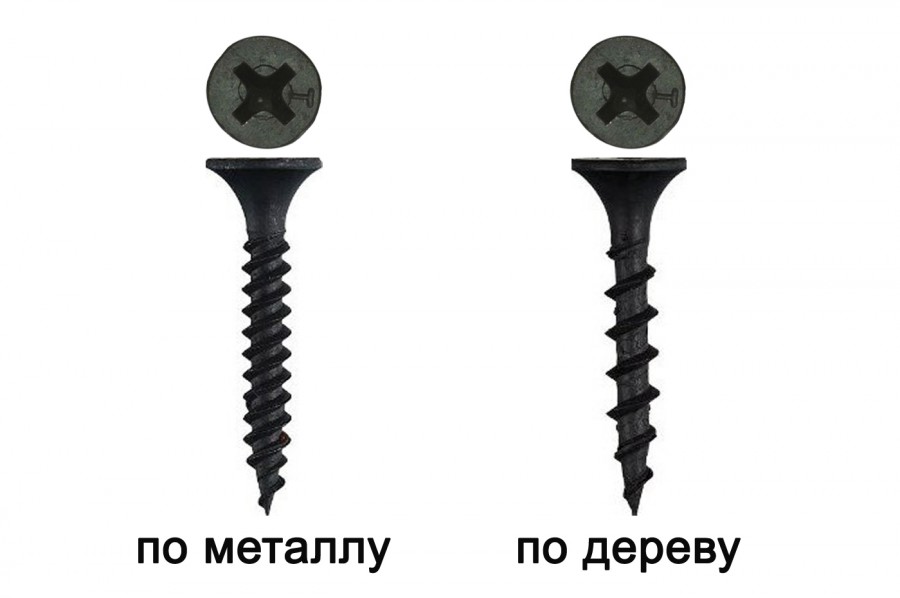 Саморезы по металлу выпускаются со сверловым концом и частой резьбой. Их диаметр пропорционален длине изделия. Используется нескольких типов: