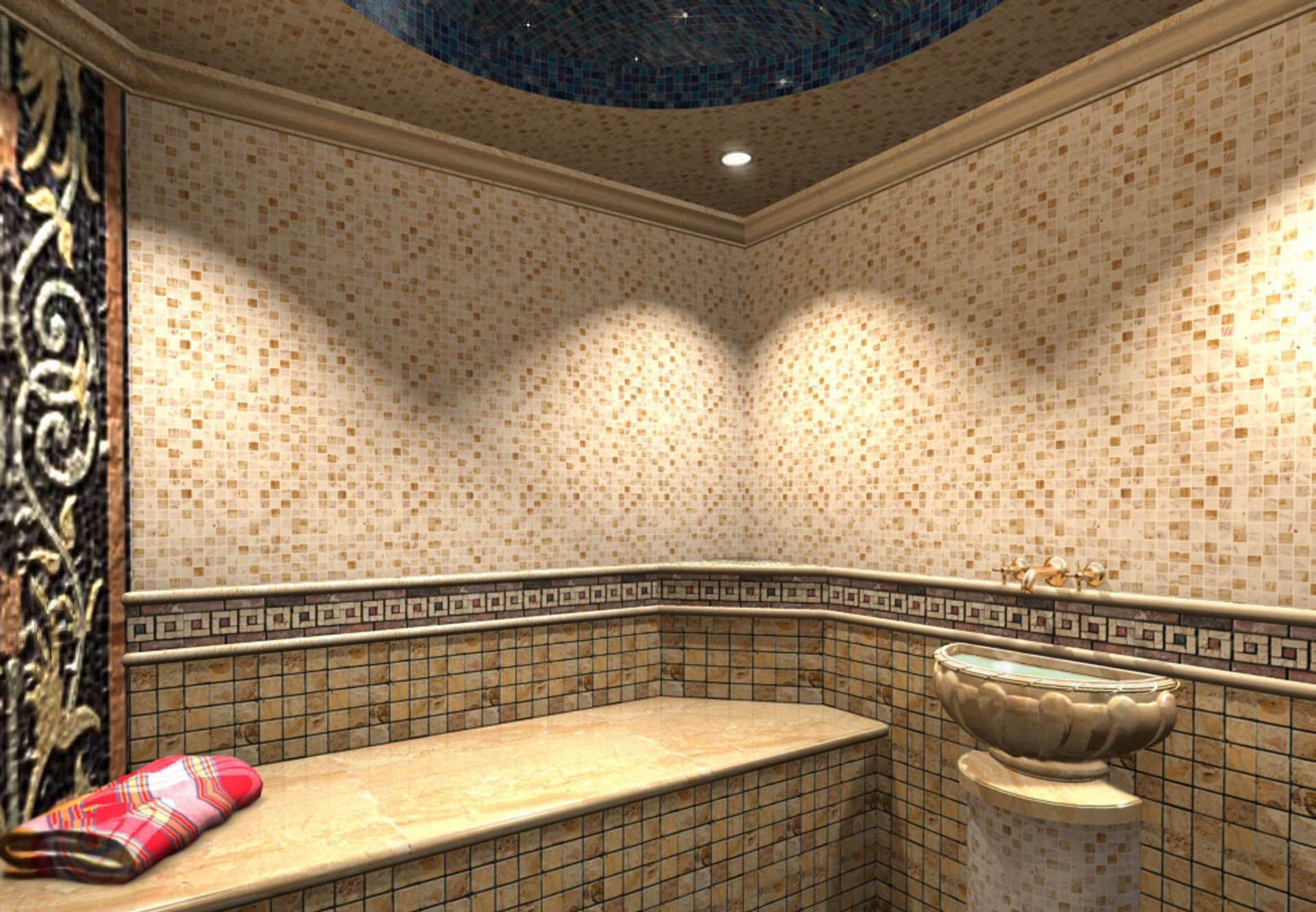 Характерная черта турецких бань — восточный стиль, в котором оформляется интерьер помещений. Причём здесь возможны варианты — дизайн может быть грубоватым либо ярко строгим. Не последнее значение имеет освещение в бане