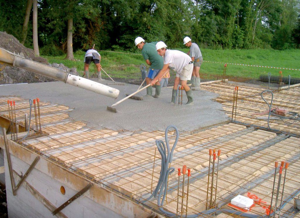 Чтобы обеспечить равномерный слой бетона, его заливку лучше осуществлять с помощью насоса. При этом устанавливать опалубку можно постепенно, а работу разделить на части. Это облегчит усилия при ручном труде. Кроме того, нужно знать следующие особенности: