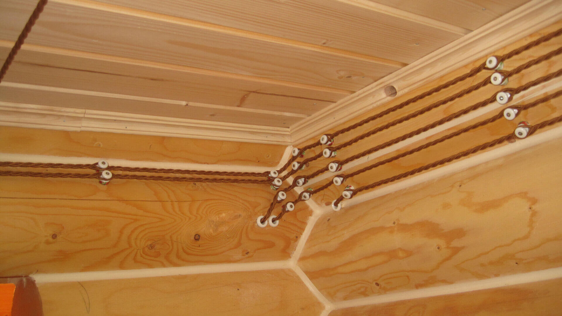 При этом видимые части линии можете выполнить витым декоративным шнуром на керамических изоляторах.