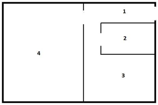 Где: 1 – прихожая, 2 – ванная комната, 3 – кухня, 4 – зал.