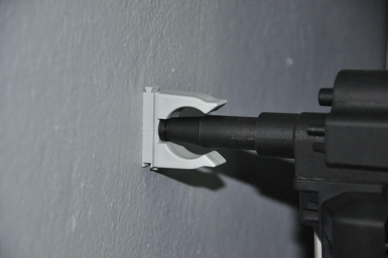 Гофра монтируется на поверхности стен с помощью клипс или дюбель-хомутов. При наличии газового пистолета вы можете значительно ускорить закрепление клипс по кабельной линии, а монтаж кабеля в гофре в клипсы происходит за считанные минуты.