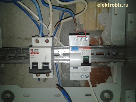 Как видите у него тоже есть петелька, только сверху, это пружинный зажим. Тянем, надавливаем, готово! Присоединяем провода. Чтобы правильно подключить дифавтомат, обязательно соблюдаем цветовую маркировку жил: