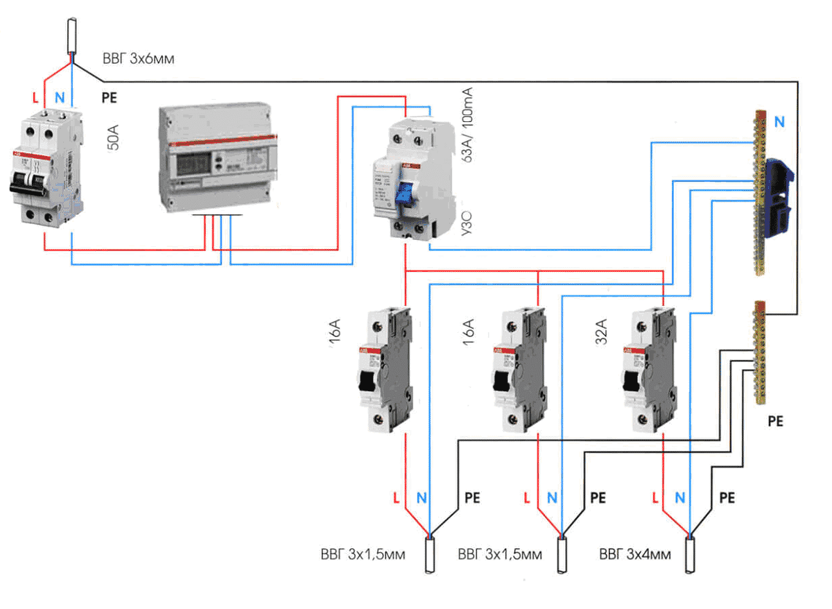 Любая схема с дифференциальным автоматическим выключателем — это отличная защита от КЗ и перегрузок для бытовых электроприборов и самой линии подачи электроэнергии, а также человека от поражения электротоком. Оптимально подобранная схема подключения способна выполнить все свои функции, конечно, если правильно выполнить монтаж дифавтомата.