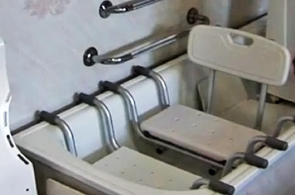 - Сиденье для ванны для пожилых людей и инвалидов. Основное отличие этих приспособлений заключается в минимуме излишеств – вернее будет сказать, что лишнего в них вообще ничего нет. Максимум, что могут иметь эти сиденья, это поручни, которые помогают не только удерживаться в ванне, но и забираться в нее. Эти моменты в значительной мере оценят не только люди с ограниченными возможностями, но и те, кто за ними ухаживают. Сиденье для пожилых людей имеет надежное крепление к ванне и позволяет не беспокоиться о том, что оно может стать причиной несчастного случая.