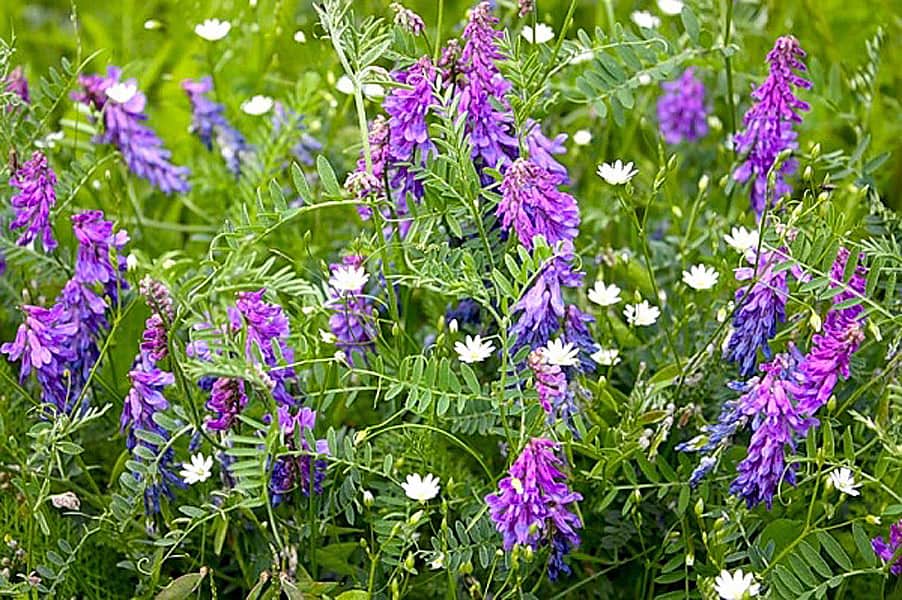 Немногие бобовые могут конкурировать с викой мохнатой по вкладу азота и производству биомассы. Зимостойкая, широко адаптированная бобовая культура, корни которой продолжают развиваться даже зимой. Если вика не поддерживается другой культурой, высота ее покрова не превысит 90 см, но если расплести лозу — до 3,5 м! Заделка богатой биомассы вики может стать непростой задачей, однако ей нет равных в борьбе с сорняками и фиксации атмосферного азота. Именно вика волосатая наиболее широко используется в качестве сидерата на американских полях (есть масса хороших полевых исследований).