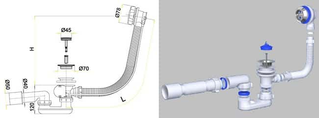 Модели сифонов для ванны