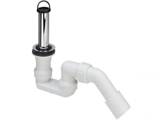 В основе трубчатого сифона лежит изогнутая труба – колено, сток из которого расположен выше нижней точки изгиба. В трубе постоянно находится вода, которая играет роль гидрозатвора и не пропускает запах в помещение. Чаще всего это исключительно функциональное изделие из пластика.