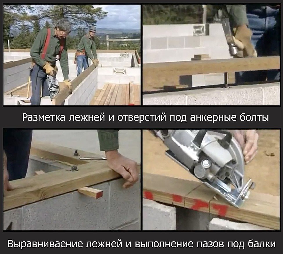 Процесс крепления лежней к фундаменту